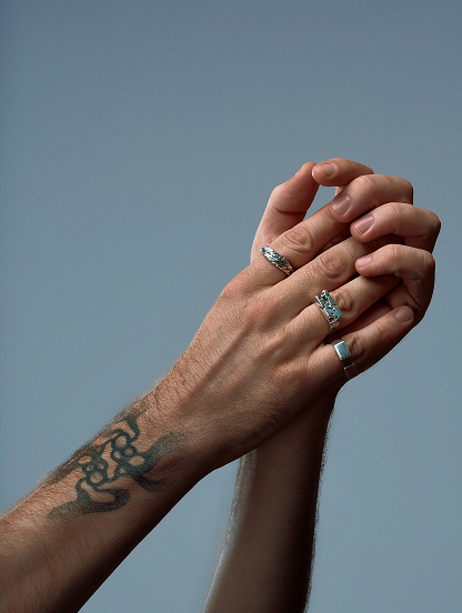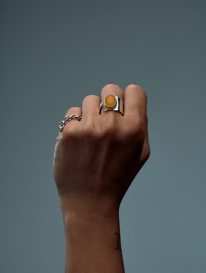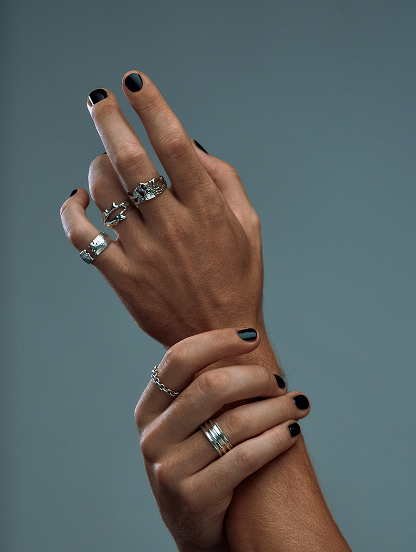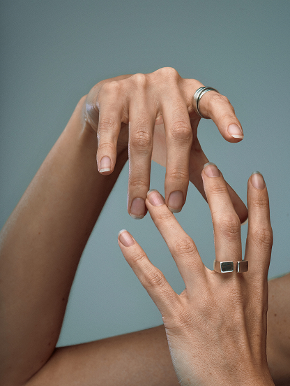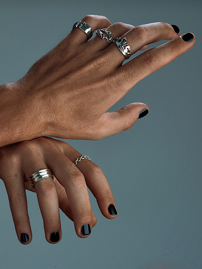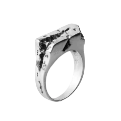 The 'Rock' ring was born from the desire to transform the strength of stone, sculpted by time, into a jewel. Its marked surface speaks of erosion by the elements: one side strong and resistant, the other crossed by fissures that let the light seep through. An imperfect balance that reflects the beauty of nature and the memory it carries.