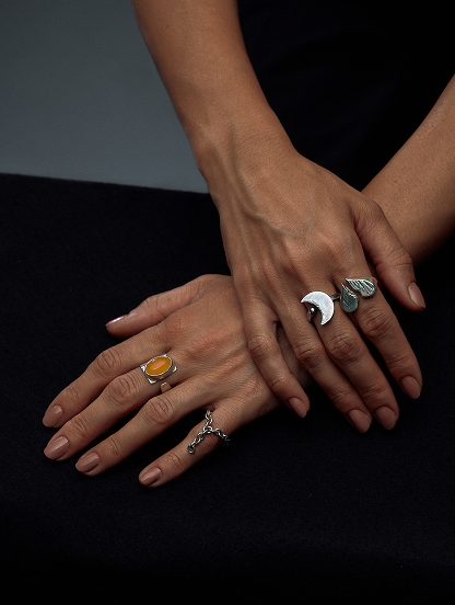 This ring was born almost playfully, starting from the form of a realistic beetle that was deliberately deconstructed and transformed into something new. The rigor of the figure was released, giving way to freedom and experimentation, dissolving into a more abstract and spontaneous gesture. A light yet meaningful creative process that speaks of transformation: as in life, what ends does not disappear, but changes form and continues to exist, revealing unexpected beauty.